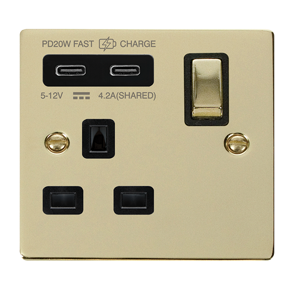 13A 1 Gang Switched Socket Outlet With Twin Type C USB (4A) Outlets
