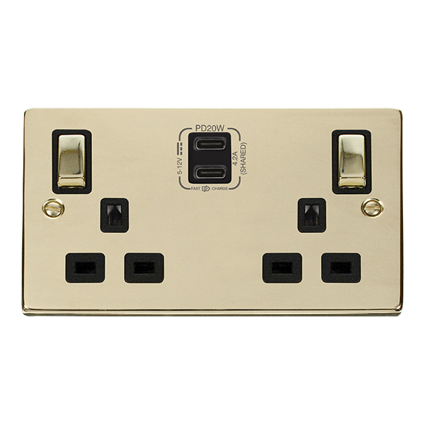 13A 2 Gang Switched Socket Outlet With Twin Type C USB (4.2A) Outlets