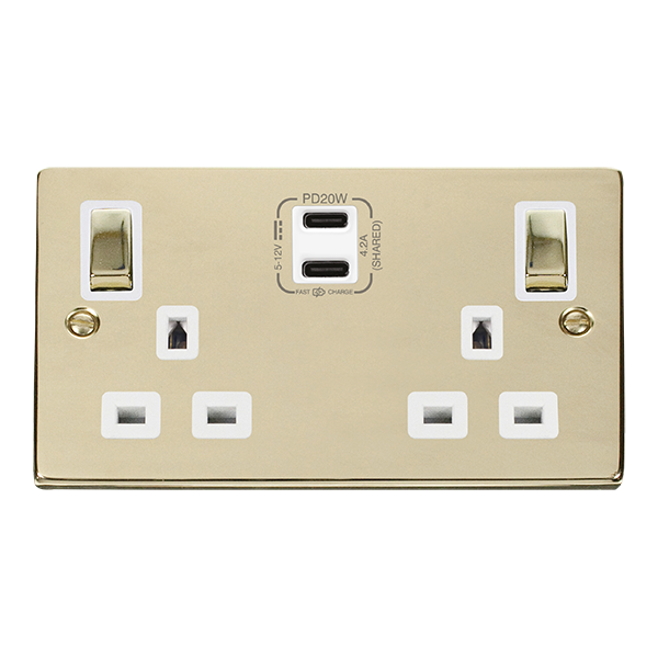 13A 2 Gang Switched Socket Outlet With Twin Type C USB (4.2A) Outlets