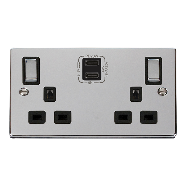 13A 2 Gang Switched Socket Outlet With Twin Type C USB (4.2A) Outlets