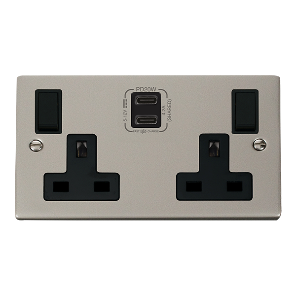 13A 2 Gang Switched Socket Outlet With Twin Type C USB (4.2A) Outlets