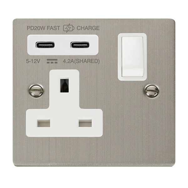 13A 1 Gang Switched Socket Outlet With Twin Type C USB (4A) Outlets